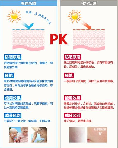 防晒原理上,分为化学防晒和物理防晒。