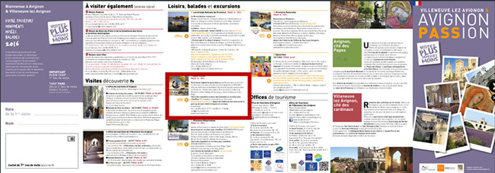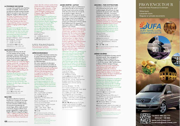 阿维尼翁旅游局官方杂志期刊内容如下:链接地址http://fr.calameo.com/read/001985010130b65bc4620 参见第45页