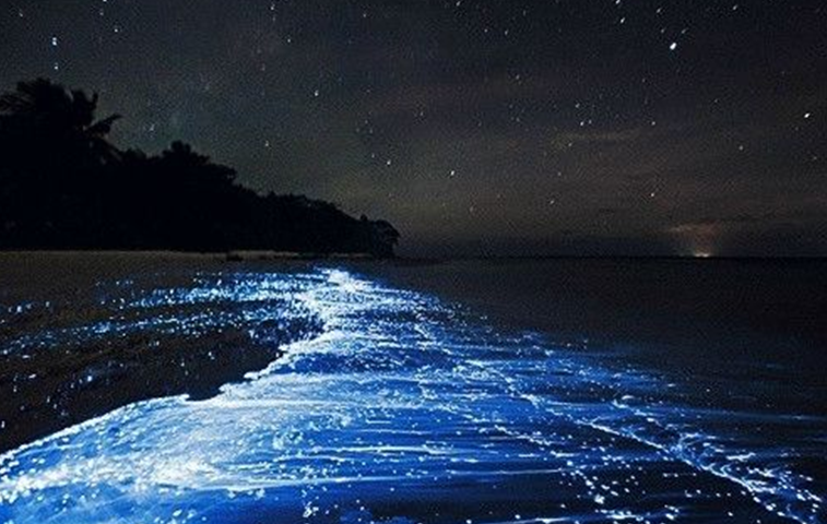 这并不是蓝色沙子,而是分布在海岸边的发光浮游生物造成的。这个沙滩位于马尔代夫,堪称自然奇景。
