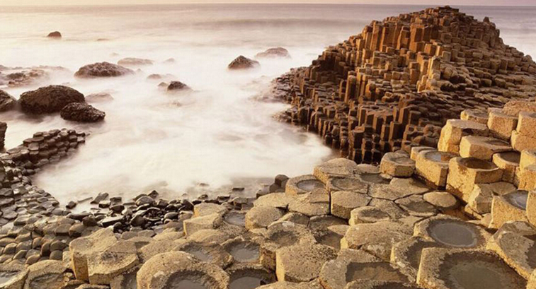 海滩上不一定都是沙!这些排列整齐的石柱位于爱尔兰的海边,是玄武岩经融化和硬化后形成的。