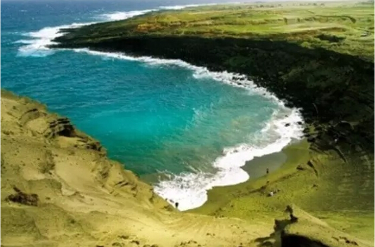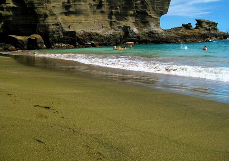 世界上有两个绿色沙滩,位于夏威夷和关岛。这颜色来自于橄榄石晶体(很可能是从海底火山来的)。由于橄榄石晶体比大多数矿物质重,最终被冲到海岸上。