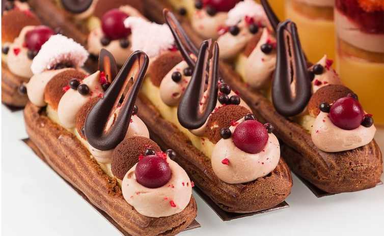 但是大家都有面对这诱人的泡芙纵情一咬,奶油溢出的尴尬。这对于苛刻讲究的法国女人来说简直是灾难,所以出现了指状的闪电泡芙,从此美味和优雅即可兼得。酥酥的皮里填满浓浓的巧克力和杏仁奶油酱,甜度能够让你忘乎所以,欲罢不能。