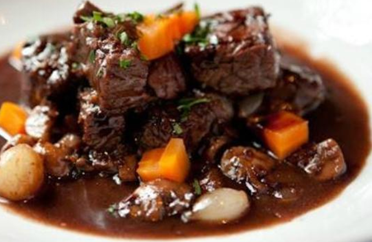 这个名字在法语中很拗口,但是红酒烩牛肉是很受欢迎的法国菜。如果你想邀请朋友,那么就需要提前一天来准备食材了。最佳搭配还是勃艮第干红。甜品还是选择法式An?leflottante。