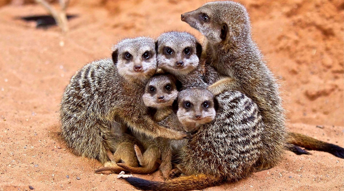 不少人都去过野生动物园:坐在汽车里看狮子大象,感觉十分惊险。这个位于南非奥茨胡恩沙漠外围的野生动物保护区似乎没有狮子大象看,但却有另一种有趣的动物——猫鼬。迪斯尼动画《狮子王》中的丁满(也出现于《彭彭丁满历险记》)就是猫鼬。