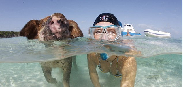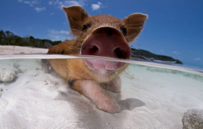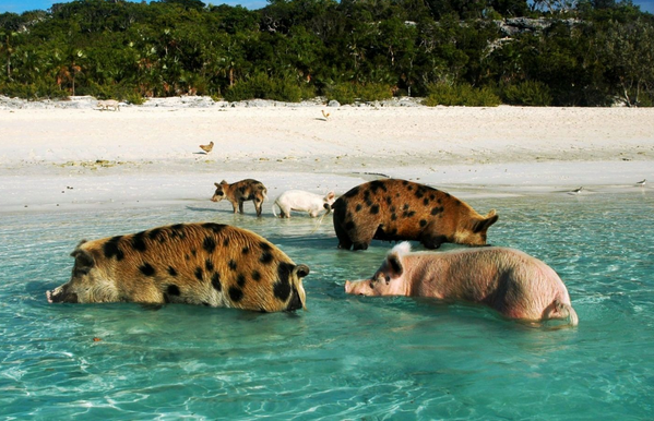 有关这些猪的来历更是众说纷纭,有人说它们是群多年前被水手忘在岛上的“晚餐”,有人说它们是艘沉船上的幸存者。无论如何,这些猪已经在小岛上繁衍生活了好几代,并早已成为吸引众多游人前来观赏的明星。