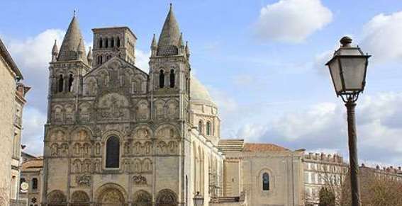 位于法国夏朗德省昂古莱姆的昂古莱姆主教座堂(Cathédrale Saint-Pierre d'Angoulême),为法国罗马式建筑和雕刻艺术的代表作。它是罗马式教堂的创新结果,在此之前,建筑史上从未有过在教堂正面的两旁加上钟塔的设计。