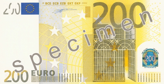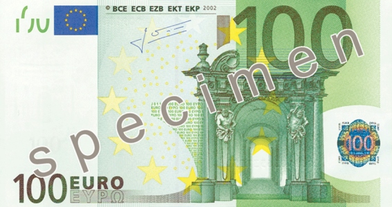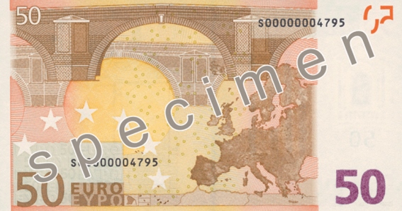 欧元纸币共有7种面额:5欧、10欧、20欧、50欧、100欧、200欧和500欧。纸币的设计,在整个欧元区都正面使用了门廊或窗户,象征着“开放与合作”欧盟的核心精神,而背面则使用桥梁的的设计方式,象征着“欧洲人民和世界其他地区人民的交流”。以“欧洲不同时期的建筑风格”为主题,表现出七个不同时期的欧洲历史文化。
