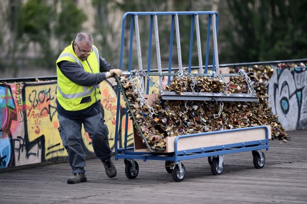 一名叫Francois的师傅,是专门从事修缮巴黎桥梁的。Francois也参与了更换爱情桥的活动,不过这位大叔觉得这样粗鲁的把象征爱情的锁直接丢弃,会伤害了世界各地前来的恋人们的心,于是他积攒了150公斤的锁,打算找个妥善的方式处理它们。