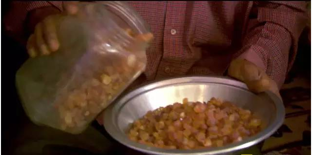 农贸市场买来我们吃的小扁豆、冰糖和阿拉伯胶,对着镜头大嚼起来……