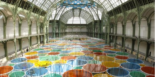 自2007年开始,这个在法国文化部和通讯部倡导之下,并由巴黎大皇宫博物馆主办的大型装置艺术展---Monumenta,每一届都会邀请一名国际知名艺术家,运用自己的才华,将当代艺术夸张、原创和匪夷所思的特色与建筑的历史相融合,在占地13500平方米、高35米的大皇宫的大殿内进行艺术创作。