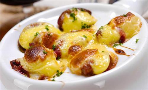 烹调蜗牛一般要先把蜗牛肉从壳中取出来,移除内脏,在沸水中煮熟,再把蜗牛放回壳里。同时在干净的壳中加入蒜末、黄油,然后将“改装”过的“蜗牛放入底下有6个圆孔的盘内,防止滚动,搁在炉火上烘烤,香喷喷的“法式蜗牛”就诞生啦~ 配上法式面包或蒜香面包,味道相当鲜美。