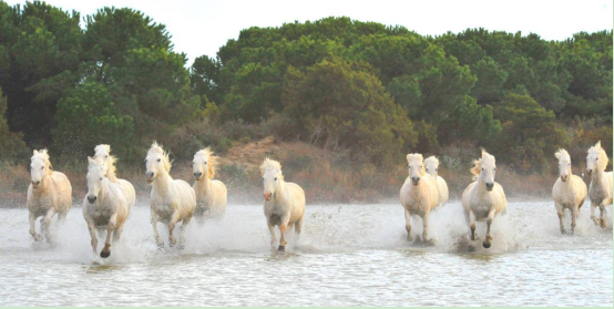 卡马尔格(Camargue)到处是美丽的自然风景。那些受到保护的生物和植物群在沼泽地和池塘里自由自在地生活着。夜幕降临在海上圣玛丽(Saintes-Maries-de-la-Mer), 这个深受浪迹天涯游者喜欢的小渔村。