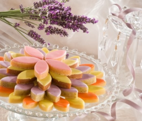 卡里颂杏仁饼是普罗旺斯的传统经典饼干。整体的形状是狭长且扁平的菱形饼干,上层裹着白色的糖霜,材料是新鲜的杏仁、糖渍蜜瓜、果酱等。普罗旺斯各家的饼铺都会有一些自己独特的配方,所以各家口味不尽相同。