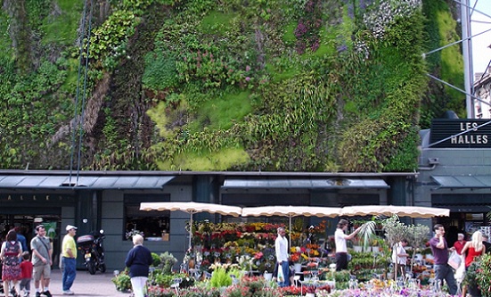 装饰着绿色植物的Les Halles外墙也是非常有特色的。