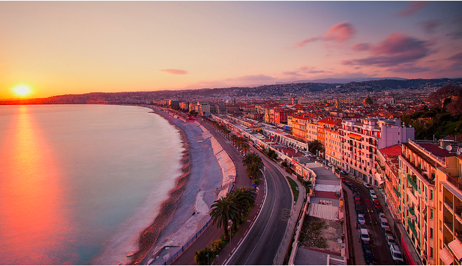 如蔚蓝海岸的珠宝闪耀着的尼斯,走在铺陈的鹅卵石街道上,整齐排列而又装潢精致的甜品服装店迎接你的到来。来到尼斯,你会被她的魅力所深深吸引,可以花上一整天的时间,观赏艺廊,造访集市与精品小店,抑或品尝尼斯沙拉,当夕阳西下,选个座位,慵懒地坐在海滩边,点杯香槟看着日落跌进迷人的海岸线。