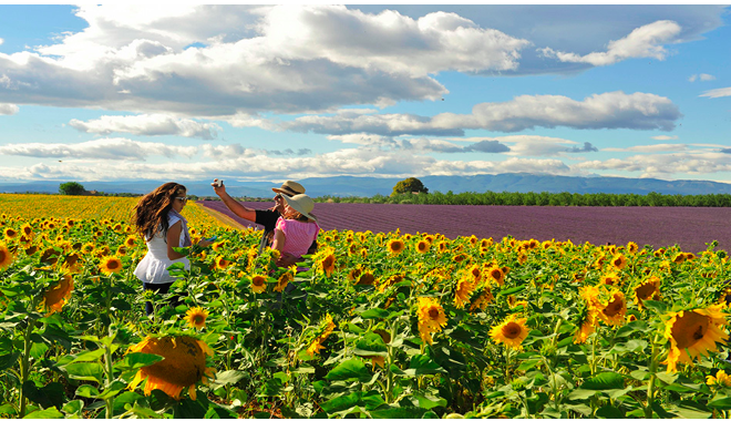 罗曼·罗兰曾说过,“法国人之所以浪漫,是因为有普罗旺斯”。每年的七八月份,随着夏日的热浪席卷,薰衣草田换上了紫色的外衣,向日葵田也蓬勃开放,空气中总是散发着醉人的薰衣草香。在这美美的背景下,照片怎能不拍美?