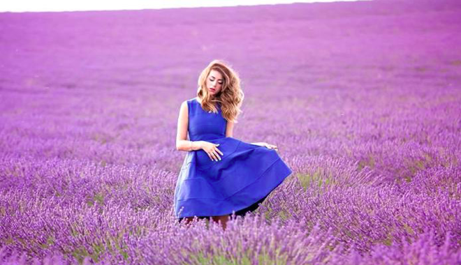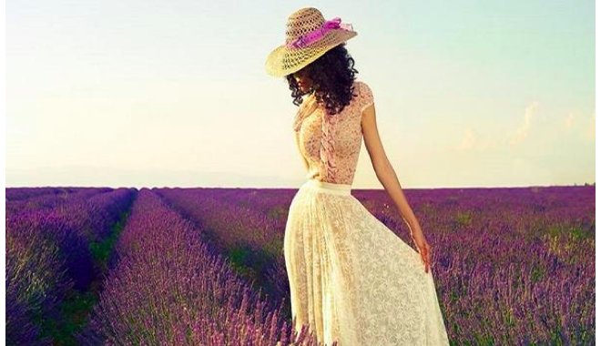 好的照片需要好的着装,在薰衣草开得最美的花海里,不妨试试白色的连衣裙,让人感到纯洁和飘逸。在紫色花海的衬托下,也显得梦幻。当然白色的裙子容易造成拍摄的过度曝光,所以拍摄前可以先试几张,调节好曝光补偿。
