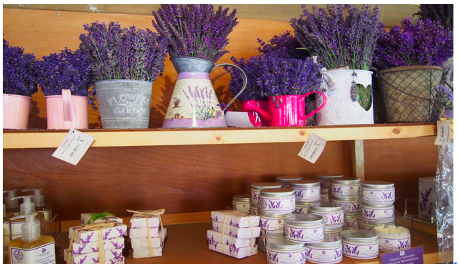 薰衣草的紫色魅惑、淡淡甜香和神奇功效,使得薰衣草制品非常受欢迎。无论是薰衣草化妆品系列,尤其是薰衣草精油,可以清热解毒、清洁皮肤、祛斑美白等,还是日常生活用品,如香皂香包,都是很好的伴手礼。