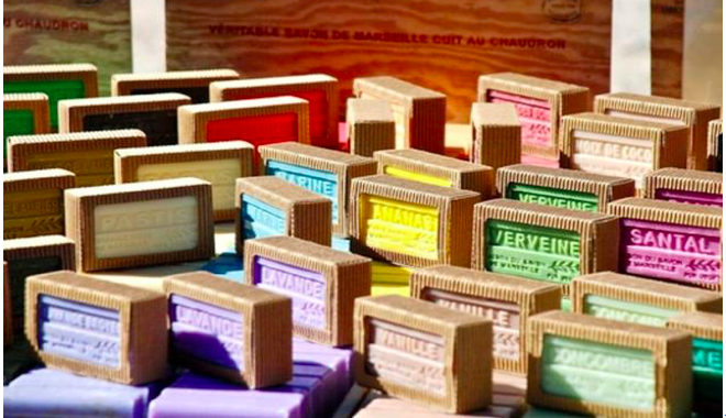 闻名世界的马赛香皂,有杏仁味、柠檬味、香草味以及其它多种的香味可供选择,是当地的特产。这里的香皂特点是加入了没有味道的橄榄油,有些还配有熏衣草,是送礼自用的好选择。很多当地小作坊都有制作出售,也有不少著名品牌。