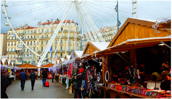 集市特色:游轮集市是马赛老港面向乘游轮经过马赛的游客而设置的旅游商品集市,集市里有当地人为游客提供的各种普罗旺斯-蔚蓝海岸特产:肥皂。薰衣草、服装服饰、手工艺品以及一些特色美食。