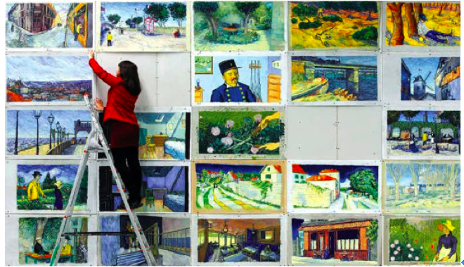 电影画面每秒由12幅梵高风格的绘画作品组成,目前有超过100名的画家参与其中。而且为了完成这部80分钟的电影,他们还将绘制56000多幅油画。
