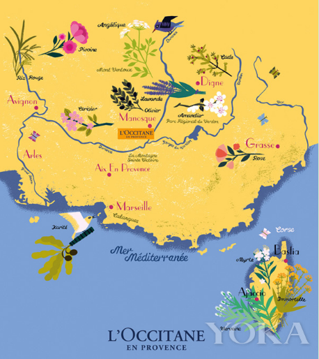本文的第一张普罗旺斯精油植物分布图,就是欧舒丹标注的。