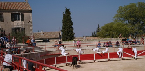 在阿尔勒的古竞技场,盛大的corrida(斗牛表演)就在这里举行,斗牛节期间,公牛在卡马尔格白马的陪伴下在城区的街道上奔跑。