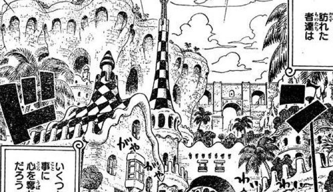 这里是妮可罗宾被抓时的所在地,被称为艾尼爱司大厅或者司法岛,只要被压倒这里必定已被认定为犯人,其原型是法国的著名朝圣地圣米歇尔山。