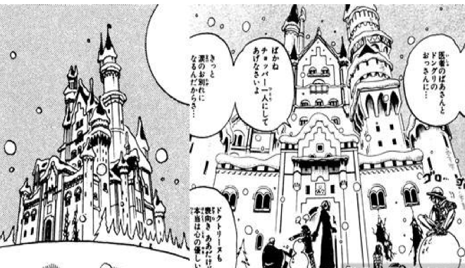 鼓磁国城堡的原型就是德国梦幻的新天鹅堡,这里就是路飞与乔巴相遇的地方,十分具有童话色彩。