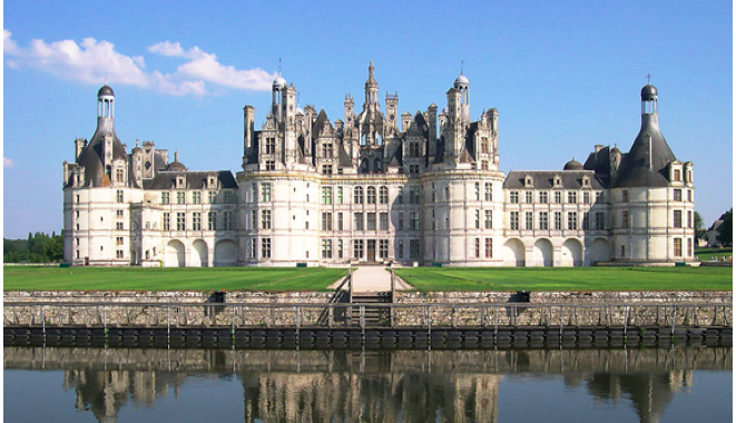 动漫中世界贵族居住地马力乔亚,庄严恢宏。作为政治中心和权力的象征,宽阔的建筑正面,和极强的对称性是其表现手段,法国香波堡的贵族气质当仁不让。