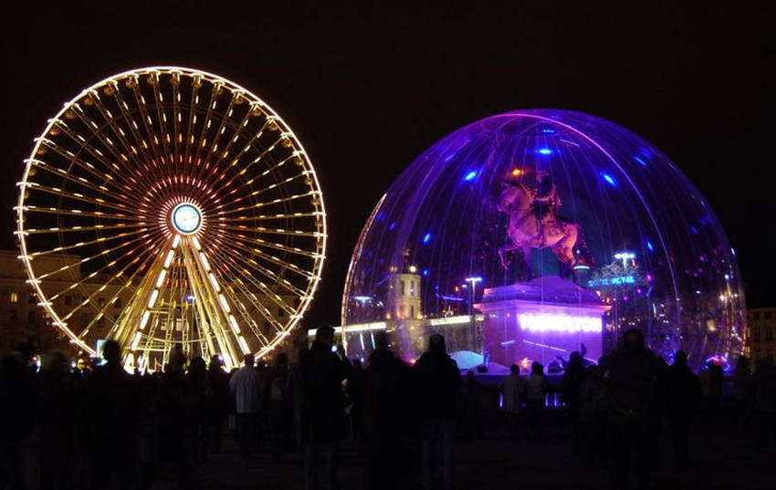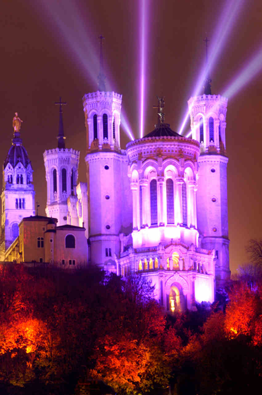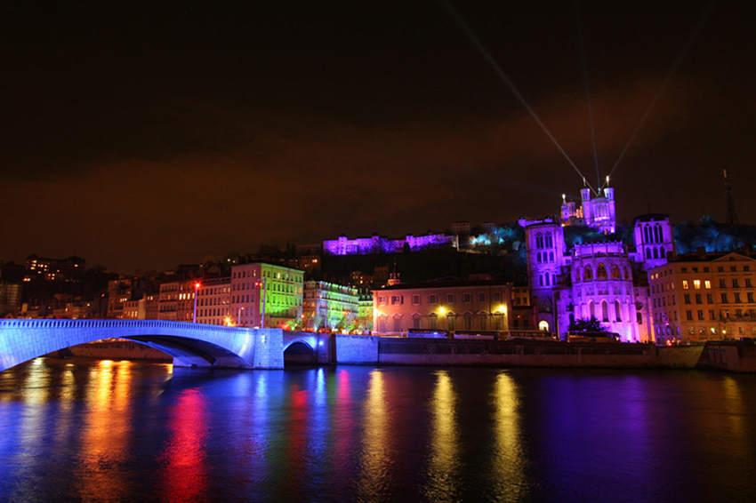 La fête des lumières 灯光节,是法国第三大城市里昂一年一度的盛事。据记载,在1643年的时候,法国南部鼠疫成灾,无数的人民遭遇到鼠疫的灾难,里昂人便像圣母玛利亚祈愿,若能得使里昂人民免受灾难,便会为其建造一座雕像,受人敬仰。果真,那一年里昂免受于难,因此里昂人在福维耶圣母院建了镀金的圣母雕像,每逢12月8日的晚上,家家户户都在窗台上点起蜡烛,来感谢和纪念圣母。若干世纪之后,里昂始终记得这次经历:每年12月8日都会举行为期4天的灯光节用于纪念。