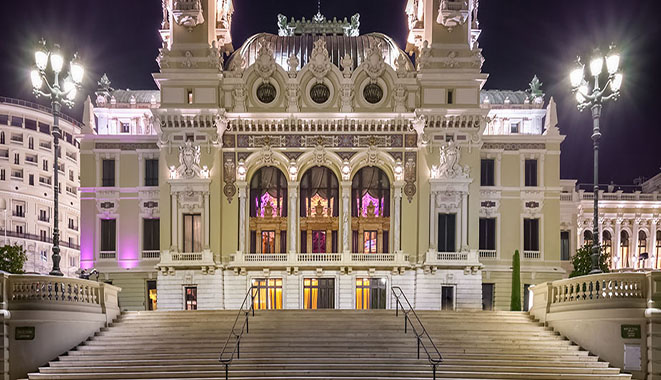 蒙特卡罗大赌场一面是赌场、一面是芭蕾剧场和歌剧院,附近的三角广场上有各种奢侈品专柜。蒙特卡洛歌剧院的表演非常精彩,但是歌剧院不对参观者开放,需持演出票进入,每年从7月中到来年4月间有精彩的演出,如果正好碰上,可以去看看。