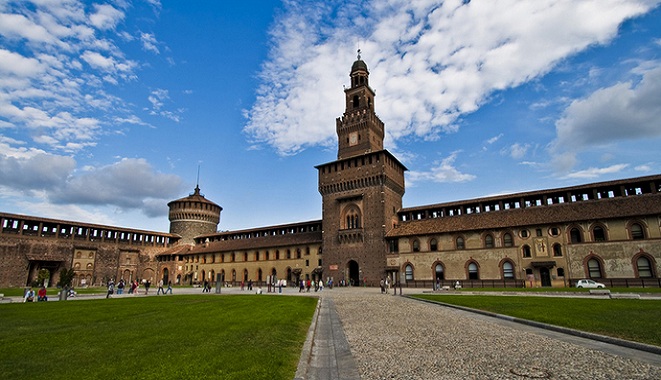 斯福尔扎城堡是米兰最重要的建筑之一,是米兰沧桑历史的见证。俯瞰整个城堡像一个大公国,有四面的高墙和精致规划过的公园。在14世纪时由斯福尔扎伯爵作为城堡而建,而后成为斯福尔扎家族的住所,见证了从鼎盛时期到家族衰败的全过程。现城堡被米兰市政府辟为博物馆,其中有应用艺术和乐曲博物馆、考古博物馆、古代艺术博物馆,他的后门是和平门,是统治者费朗西斯科改造得名的。