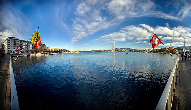 日内瓦湖是一个冰碛湖。据说在第四纪冰期,发源于阿尔卑斯山的罗纳河在埃克吕泽地区被冰碛物质所阻断,因此汇水成湖。当时,湖面一直上升到海拔425米。后来,罗纳河得到了新的出口,湖水才逐渐下降。日内瓦湖的海拔为372米。日内瓦湖中,最引人注目的是一个巨大的人工喷泉。那冲天而起的高大水柱,从湖面直射天际,蔚为壮观。1958年改建后至今,水柱的高度在无风时可达140米,停留在空中的水量达7吨之多。