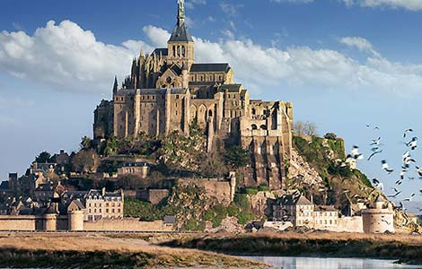 ☆ 11:45 抵达圣米歇尔山脚下,您可以在附近的餐厅享用午餐,然后乘坐摆渡车前往山上。下午的时光将在此度过,山顶上坐落着壮观的【圣米歇尔山修道院】。这座本笃会修道院是一座为大天使圣米歇尔而建的哥特式建筑杰作,其内院美轮美奂、庄严肃穆。昏暗的走廊与一束令人难以置信的光线形成鲜明对比,照亮了新近改建的中央花园。