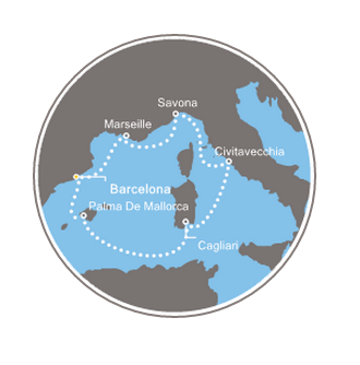 奇维塔韦基亚是通向永恒之城-罗马的门户,自13世纪以来,一直是罗马的重要港口。这所古城具有悠久辉煌的历史:皇帝图拉真在这座现代城市附近建造了精美的别墅,二贝尔尼尼和米开朗琪罗则设计了港口的防御工事。这所永恒之城散发永久的魅力。作为西方世界的古都,近2000年来,罗马一直是基督教的中心。罗马城内遍布无数的旅游胜地。您可以摆放古罗马广场遗迹、参观富丽堂皇的西斯礼拜堂,或登上曾是罗马波西米亚广场中心的西班牙台阶。离港:19:00