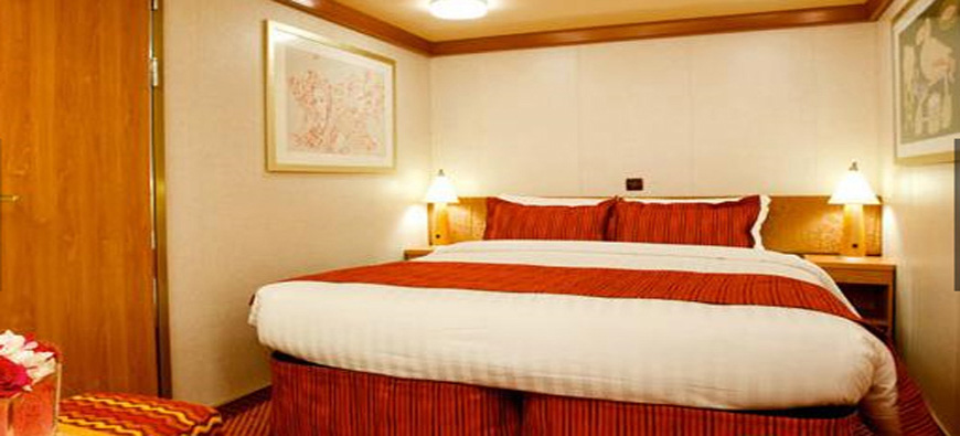 客房简介:客舱内有两张单人床大部分可转换位大号床,衣柜空间大,带淋浴的私人浴室,还有书桌,梳妆台,沙发休息区以及可观望海景的窗口。每个包厢也有自己的互动电视卫星,空调,电话,吹风机,迷你酒吧,个人保险箱,免费欧陆式早餐及24小时客房服务。