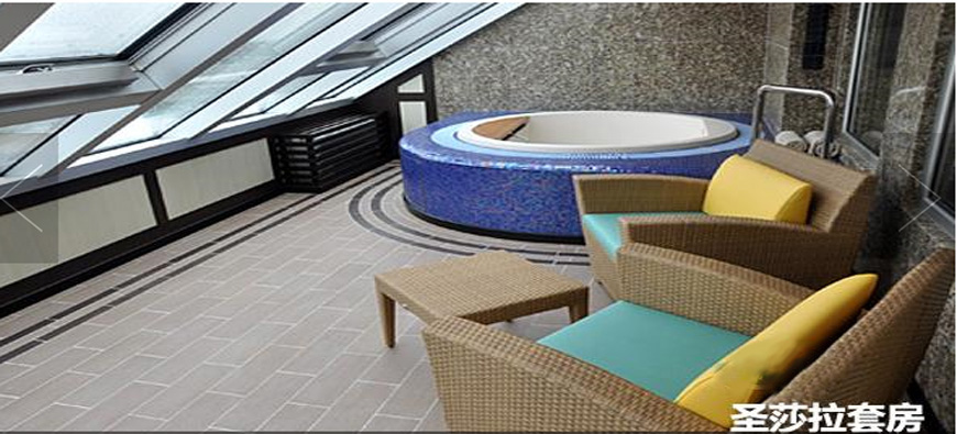 客房简介:套房内设有大型全景窗户,落地式玻璃门通往私人阳台,两张单人床其中大部分可转换为大号床,衣柜空间相当大,有按摩浴缸和私人浴室,书桌,梳妆台,沙发,扩大客厅。每个包厢也有自己的互动电视卫星,恒温控制空调,直拨电话,吹风机,迷你酒吧,免费欧陆式早餐,24小时客房服务,私人管家。