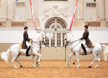 在巴洛克建筑大师Joseph Emanuel Fischer von Erlach设计的全世界最美丽的马术大厅里的盛装表演中,观众可看到利比扎马独一无二的演出。马术大厅当时是为了给年轻的贵族上骑术课而建造的。