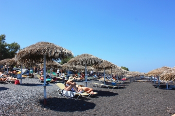 圣岛的黑沙其实是火山喷发时候的岩浆石形成的。卡玛里黑沙滩是游泳的最佳去处,海水干净清澈,还有美容作用。不过沙滩上都是小碎石头,走路很不方便。卡玛里的夜晚才是这片沙滩出名的原因,晚上这里的酒吧和餐馆热闹非凡,很多酒吧有现场乐队演奏,提供舞池,还有巨大屏幕可以观看球赛。