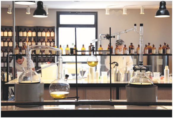 (由导览员带领,介绍生产流程与香水历史)