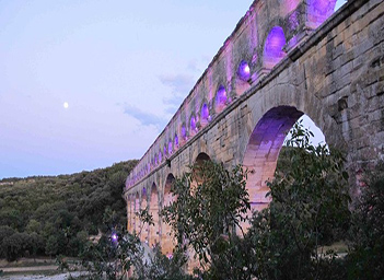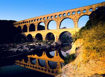 加尔水道桥(Pont du Gard)靠近法国南部的加尔省尼姆市,公元前19年,罗马皇帝奥古斯都的密友和副手阿格里帕设计了它。宏伟瑰丽的桥梁以巨石砌成,三层“桥上桥”结构使其无比坚固,是当时罗马人为给尼姆城提供生活用水,建立的一座长50公里输水道的一部分。