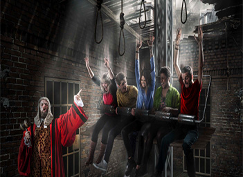 这1666年9月2日星期日凌晨1点左右,伦敦市普丁巷有一间面包铺失火。一阵大风将火焰很快吹过几条全是木屋的狭窄街道,然后又进入了泰晤士河北岸的一些仓库里。大火席卷了整个城市,所到之处一切都被焚毁。数十成民逃往市北的山中避难。军队被调来拆房屋,以形成一条火焰不能穿越的隔离带,但这一办法未能奏效。直到第4个夜晚风停了,大火才熄灭。这场大火造成的损失非常惨重。古老的圣保罗大教堂、87座教区教堂、许多重要的商厦、无数的店铺以及1.3万多间民房都被毁掉了。庆幸的是死亡人数很少。画面是以1666年来自皇家面包店的特大火灾为背景,当时大片的土地,及居民别无情的大火带走。用那种灯光的变换让游客感觉的自己置身大火之中,感觉死亡来临的气息。