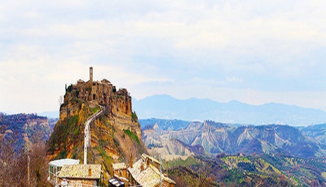 白露里治奥古城(Civita di Bagnoregio),地处维泰博省(Provincia di Viterbo),位于罗马北方约120公里处,因特殊地质之故使得旧城区宛如一座孤僻的小山头,深藏在其中的千年古城呈现小色而颓废的感觉, 城里像是停留在某個瞬間,弥漫一股寂寞的氛围,相当奇妙罕見,是宫崎骏笔下《天空之城》的原型。这块巴掌小城长不足300米,宽仅200米,仿佛悬浮在空中的一座岛屿城市,尤其是到起雾的日子,犹如漂浮空中。