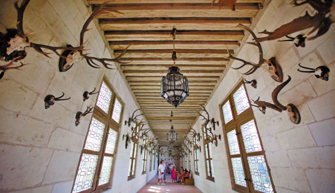 位于大厅中的双重旋转楼梯,传说中是达·芬奇的设计,而 目的则是为了让弗朗索瓦的王后和他自己的情人们上下楼梯时避免相遇的尴尬。